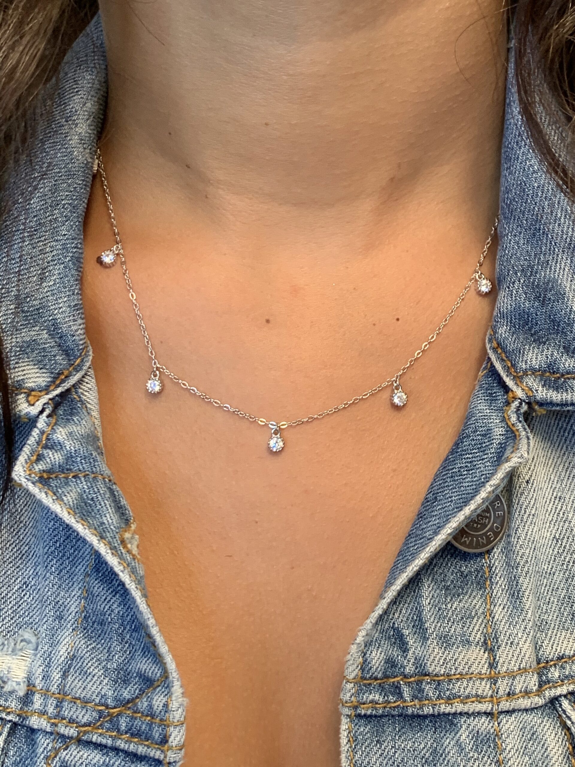 שרשרת עם 7 זירקונים נופלים לאורך השרשרת
